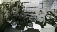 (facing us) Joseph F. Kessler Jr. giving the local high school kids a tour of the shop.